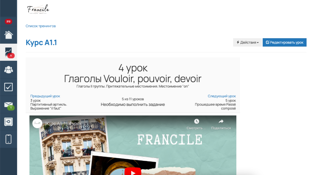 В Francile вы найдёте курс французского с нуля до B2 в видеоформате, а также фонетический курс для идеального произношения.